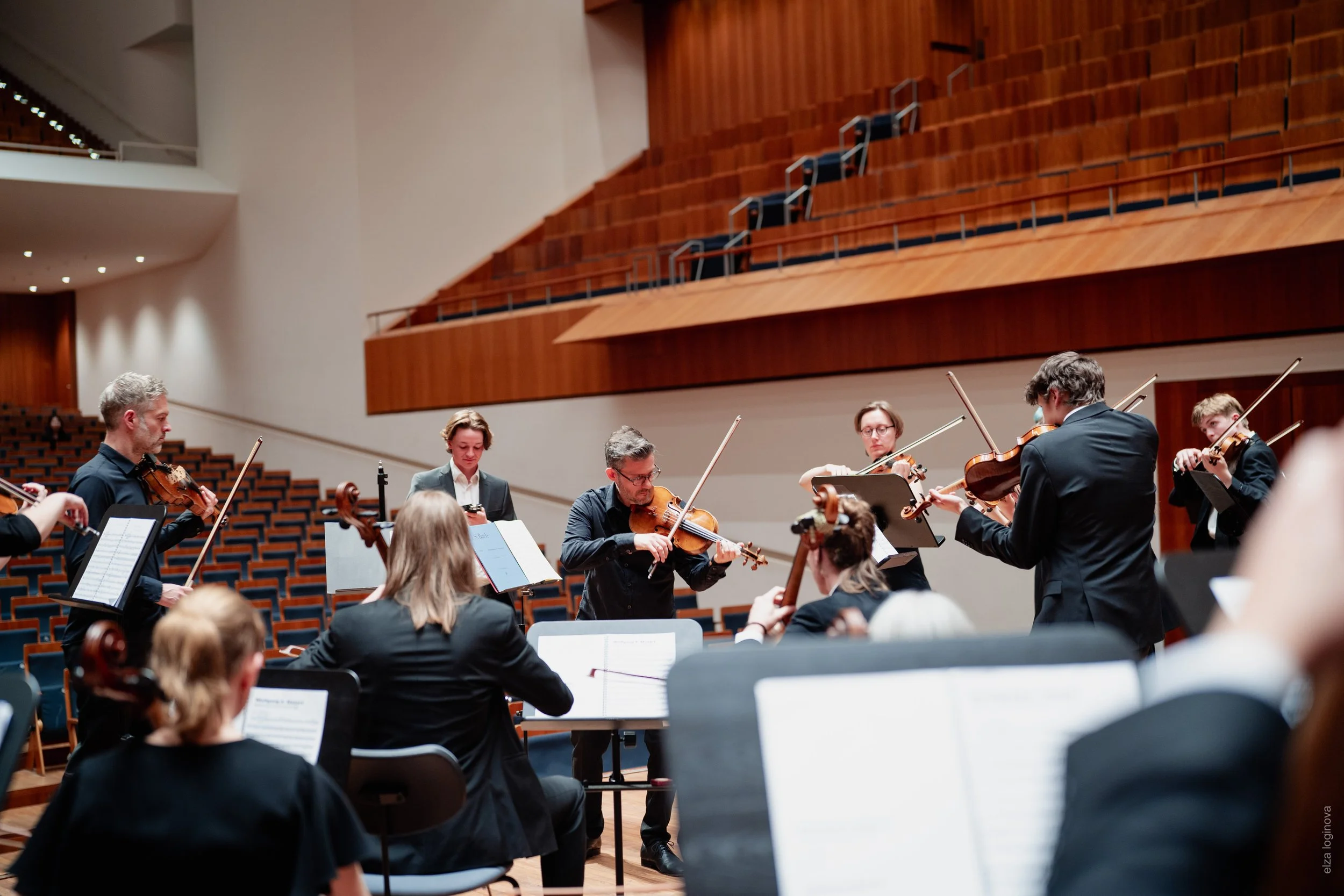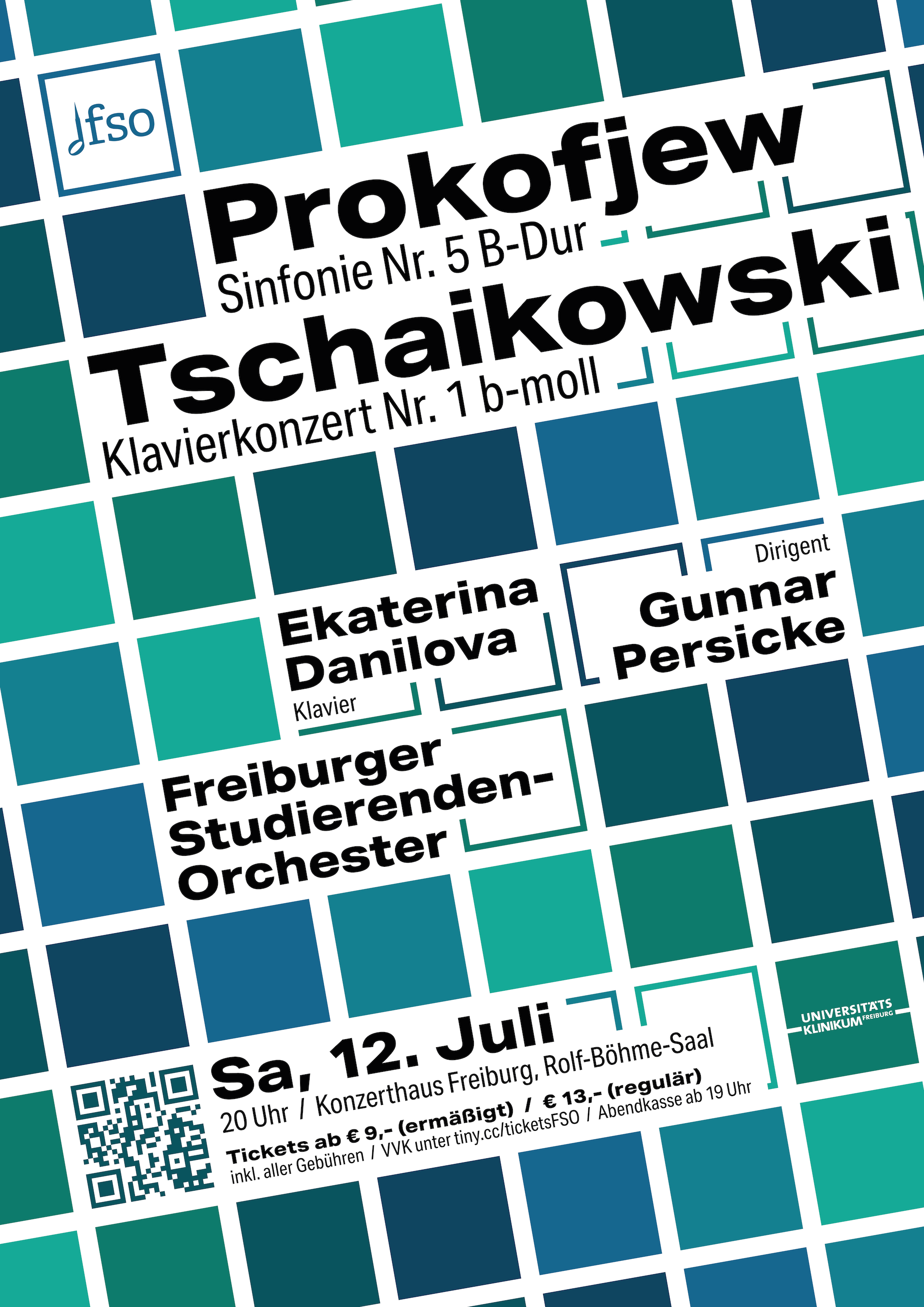 Im Sommersemester 2025 standen Prokofievs’s 5. Sinfonie und das 1. Klavierkonzert von Tchaikowski auf unseren Notenständern (und auf dem Programm). Unsere Solo-Pianistin Ekaterina Danilova beeindruckte in der ersten Hälfte uns und das Konzertpublikum gleichermaßen mit ihrer expressionistischen, temperamentvollen und virtuosen Interpretation des Konzerts.